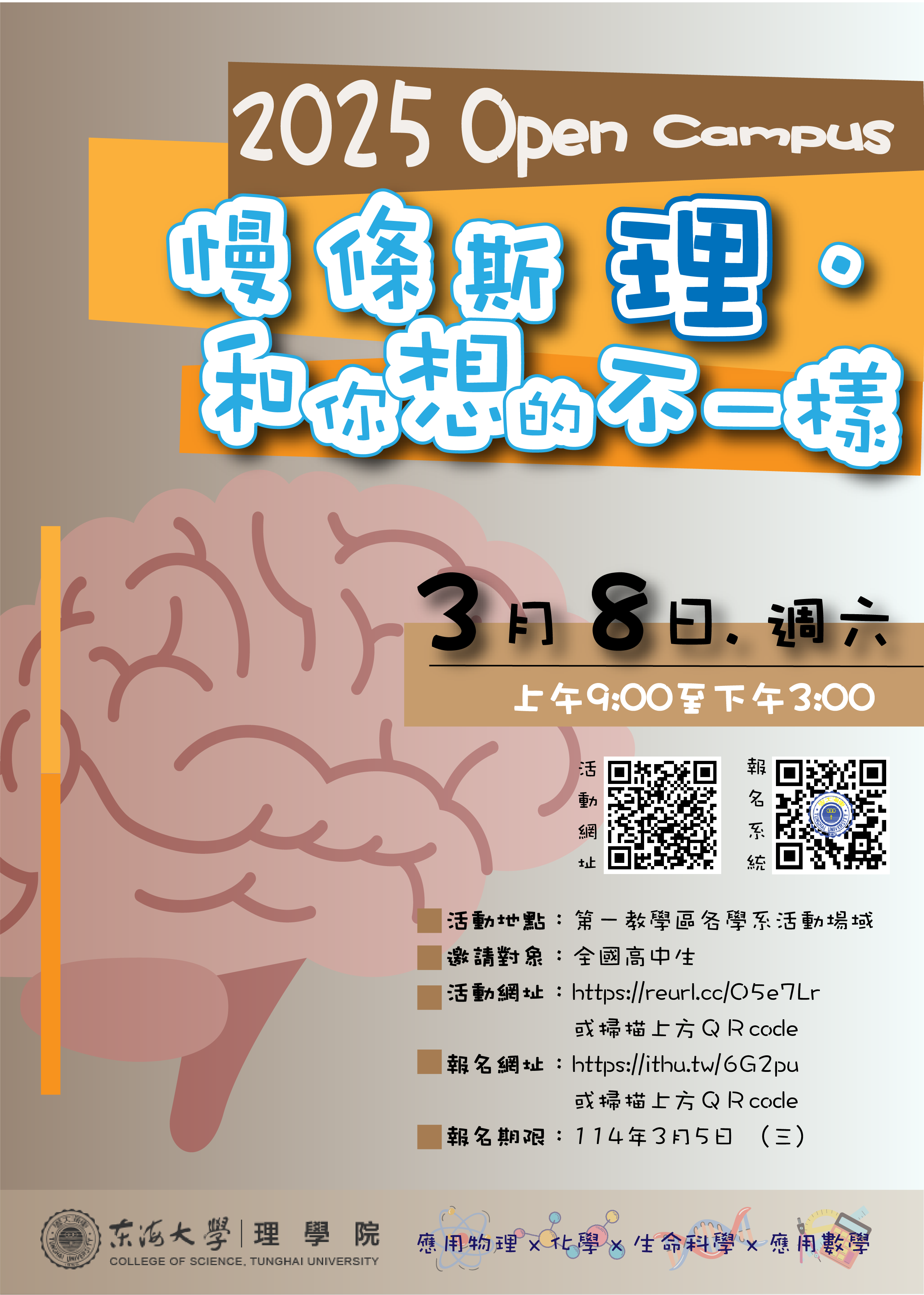 【訊息公告】東海大學理學院辦理「2025年Open Campus 慢條斯『理』和你想的不一樣」