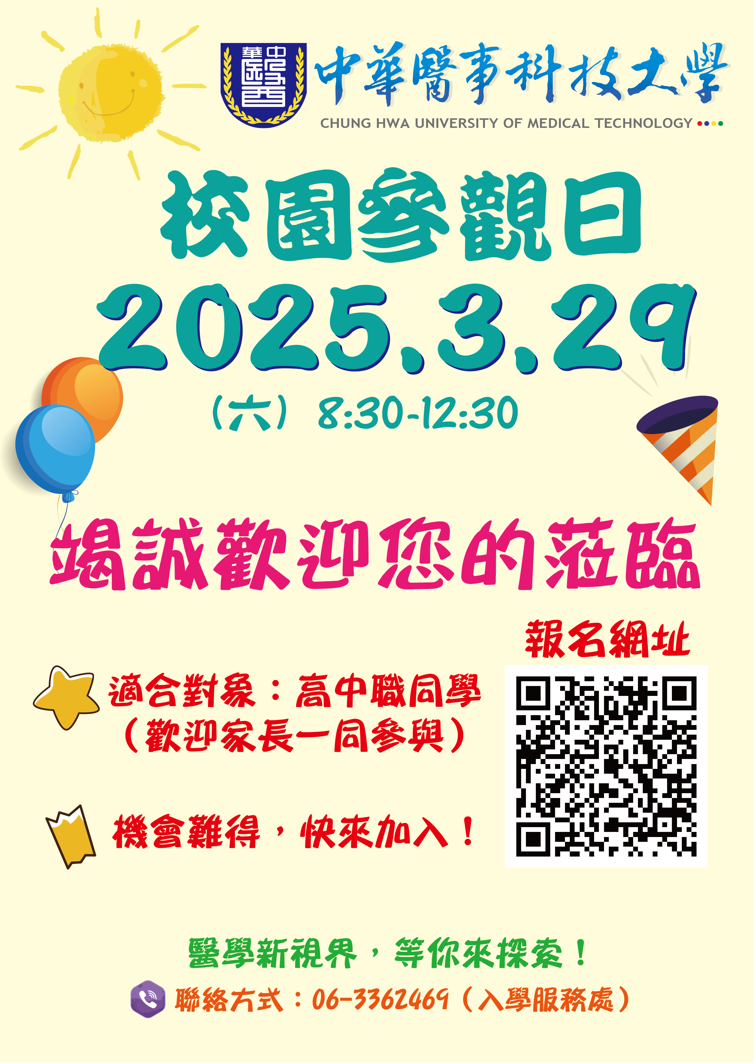 【訊息公告】中華醫事科技大學擬於114年3月29日舉辦校園開放家長參觀暨學生科系體驗日活動