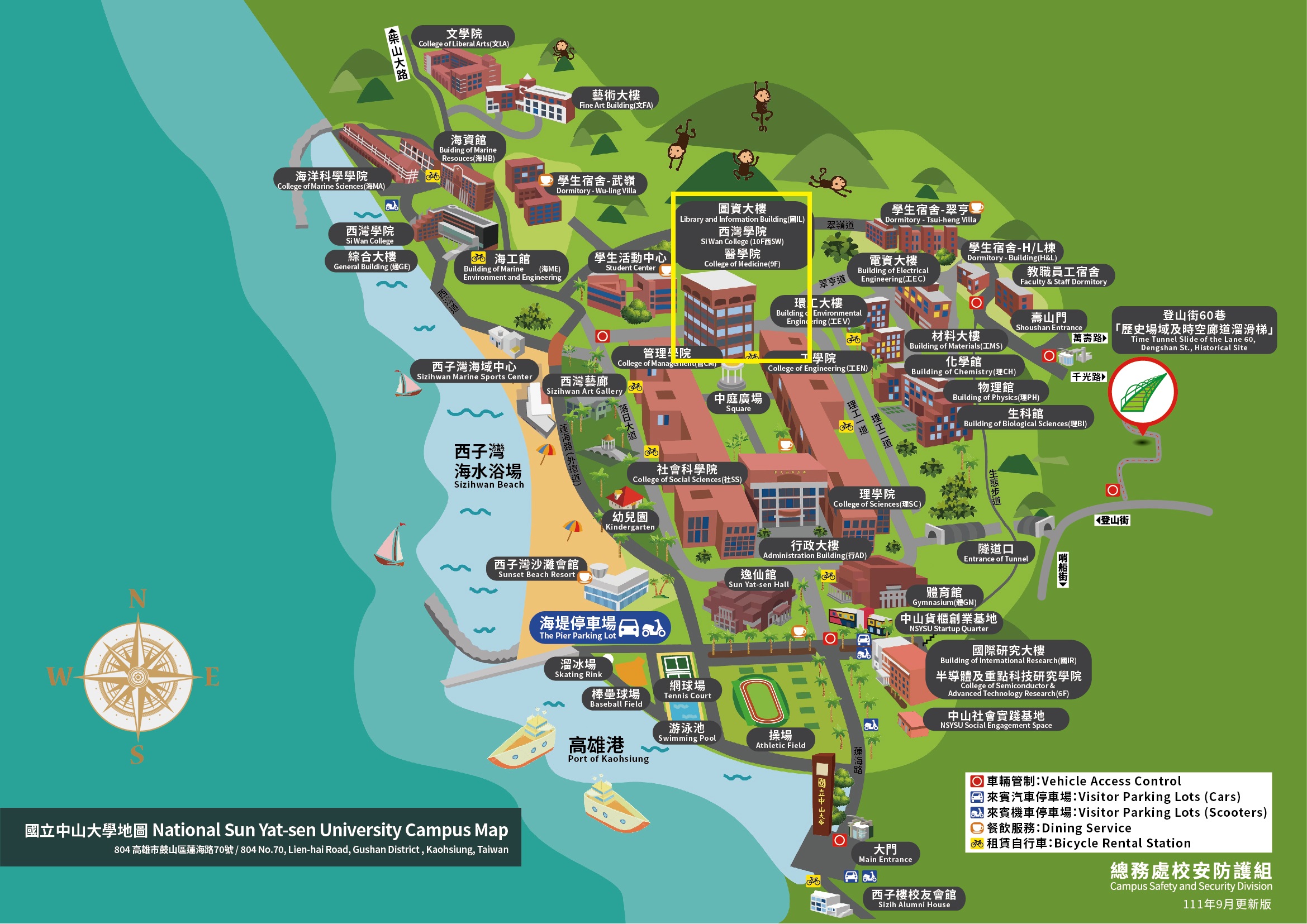國立中山大學圖資大樓;或請參 考其他交通方式