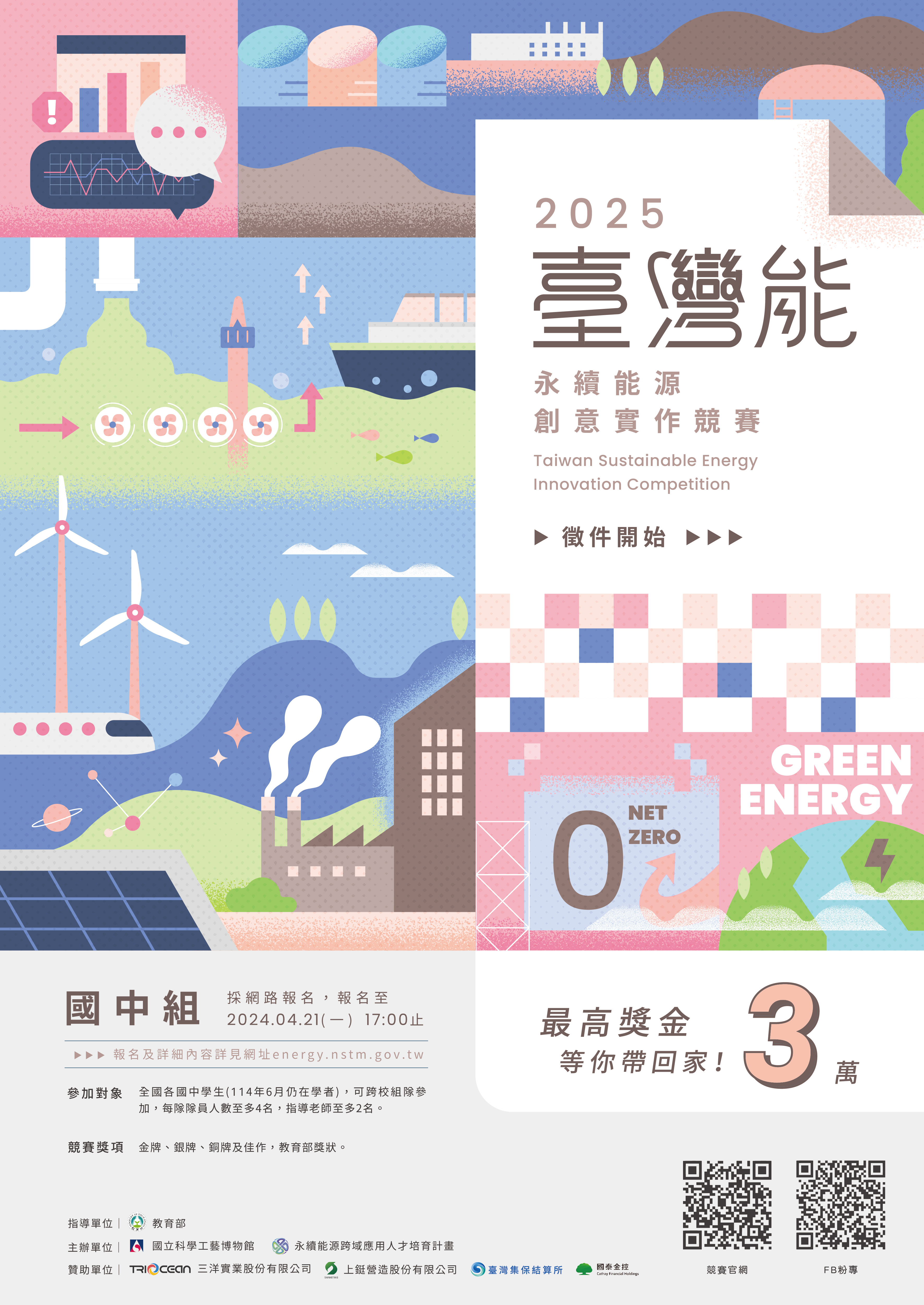 檢送國立科學工藝博物館114年度「臺灣『能』-永續能源創意實作競賽」國中組競賽電子海報1份(如附件)。