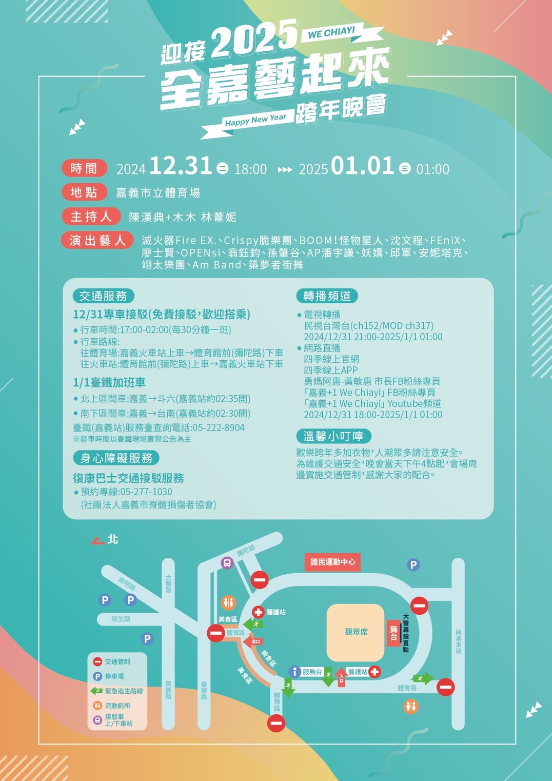 「迎接2025全嘉藝起來跨年晚會」,將於113年12月31日至114年1月1日舉辦。