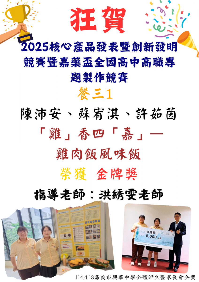賀!本校學生參加「2025核心產品發表暨創新發明競賽暨嘉藥盃全國高中高職專題製作競賽」大放異彩