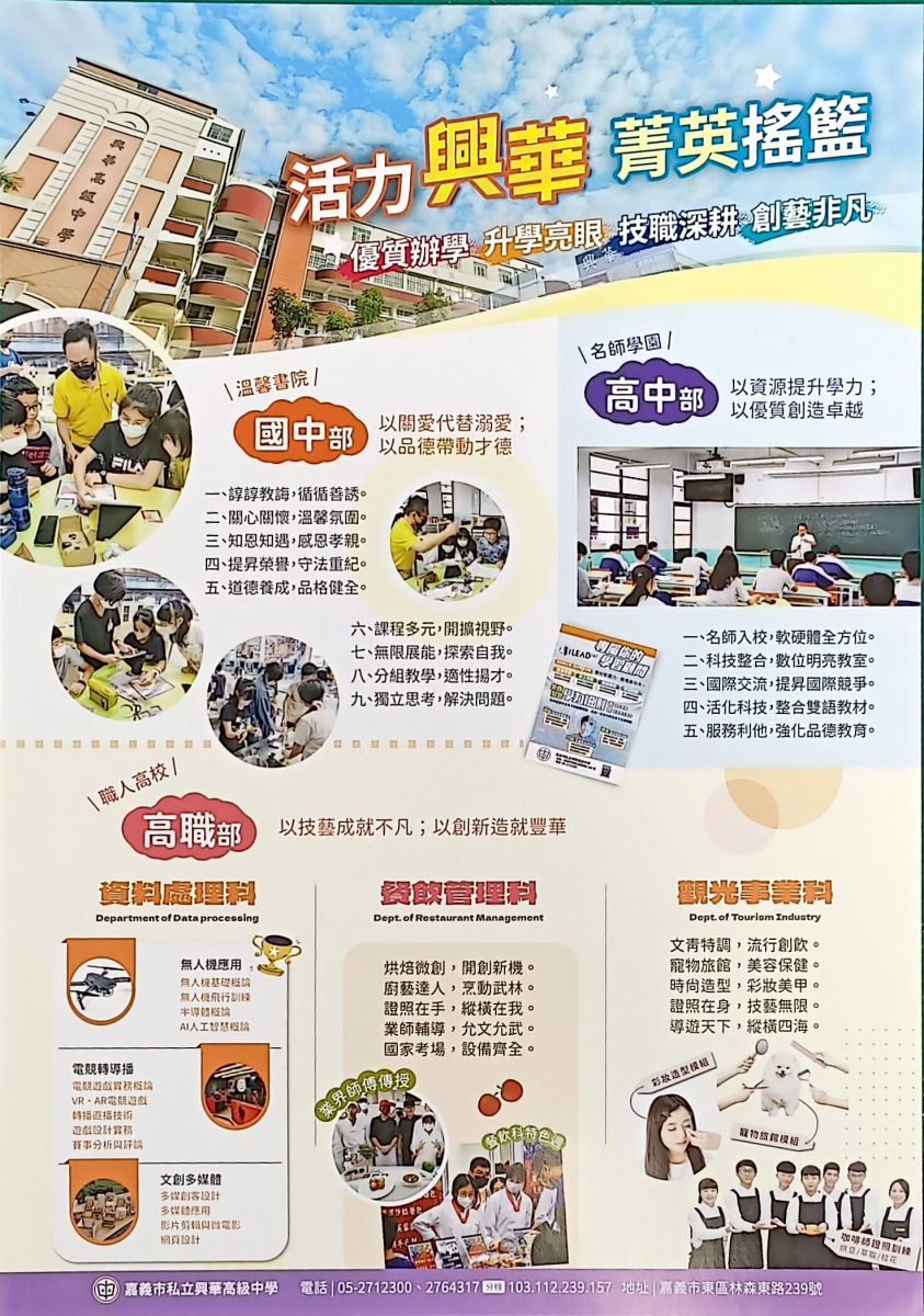 版權所有 嘉義市私立興華高級中學 | 地址:嘉義市林森東路239號 | 電話:(05)276-4317