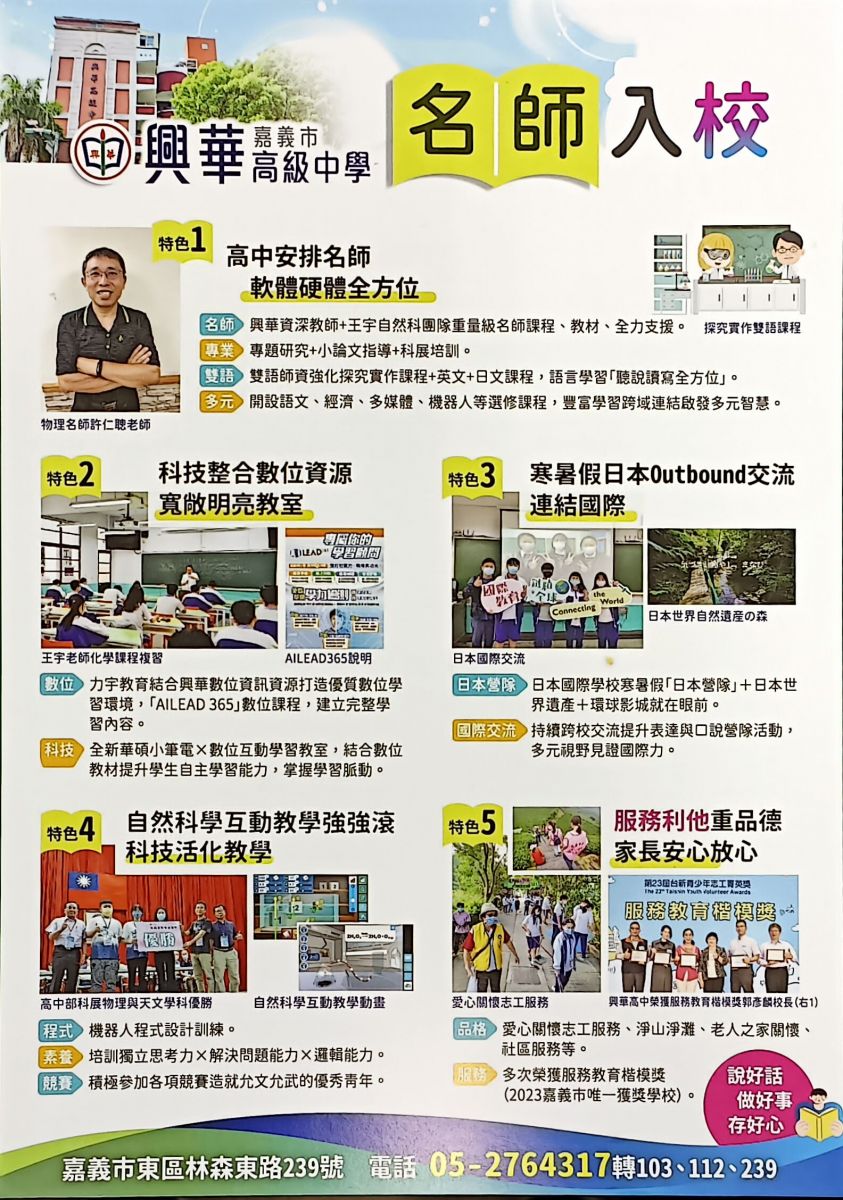 版權所有 嘉義市私立興華高級中學 | 地址:嘉義市林森東路239號 | 電話:(05)276-4317
