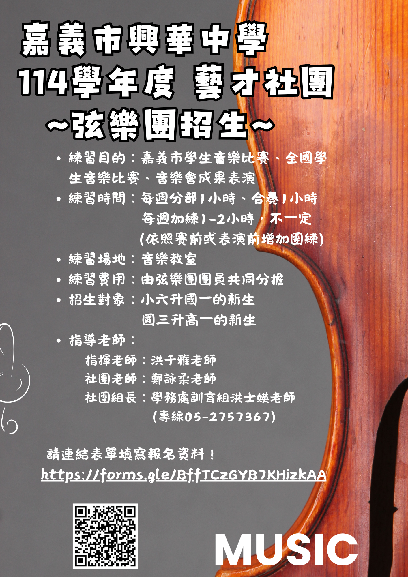 114年藝才社團~弦樂班招生~